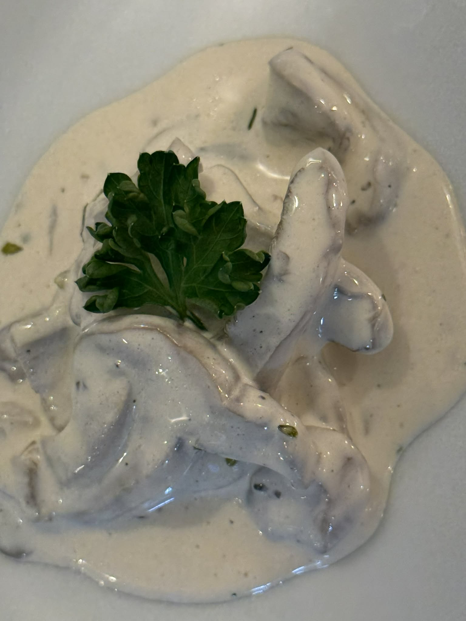 Salat mix, bleytan leyk, mozzarella, roastbeef og mushroom dressing
