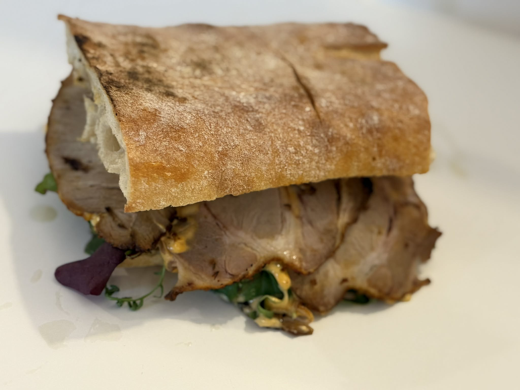 Roastbeef, grillað piparfrukt, salat mix, bleytan leyk, mozzarella og horse radish dressing